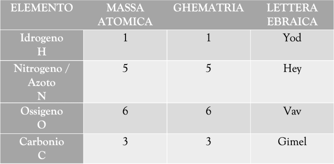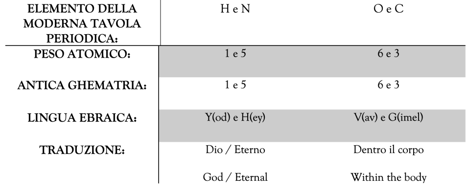 Oggi sappiamo che la MASSA ATOMICA degli ELEMENTI (i numeretti in apice nella tavola periodica) è indicata da NUMERI CHE CORRISPONDONO AI MISTERIOSI NUMERI RITROVATI NEI TESTI ANTICHI.
