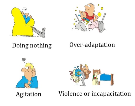 - INCAPACITAZIONE O VIOLENZA: tentativo di rinforzare una SIMBIOSI che si sta rompendo, o che il soggetto sente di star perdendo. Durante la fase acuta, NON c’è nessuna attività di pensiero e il soggetto NON ACCETTA LA RESPONSABILITÀ DEL SUO COMPORTAMENTO. Se si ricorre all’INCAPACITAZIONE, si sta usando una forma di VIOLENZA IPERADATTATA che prevede un’autogratificazione: si inscenano così svenimenti, cefalee, palpitazioni, vomito, eccetera. Al fine di responsabilizzare questo soggetto, il terapeuta deve ritirare il suo sostegno e rifiutare di prestare cure al paziente, in modo da indurlo a riflettere. La VIOLENZA è naturalmente una reazione ancora più distruttiva, pure se l’INCAPACITAZIONE, essendo subdola, crea un senso di colpa opprimente nelle persone care – pensiamo ad esempio alla madre che si fa venire la tachicardia e che accusa un forte malessere ogni volta che il marito e il figlio non fanno quello che vuole lei (può quindi essere anche un’ipocondriaca).