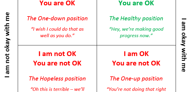 https://www.youtube.com/watch?v=m3DuWklaizM Questo articolo è basato quasi esclusivamente sul libro Analisi Transazionale e cura delle psicosi di Jacqui Lee Schiff, Casa Editrice Astrolabio, 1980 (l’originale risale al 1975, titolo: Cathexis Reader - Transactional Analysis treatment of psychosis). La Schiff era un’assistente sociale psichiatrica sin dalla fine degli anni ’60 che, sulla base dell’Analisi Transazionale di… Continua a leggere Comportamenti fortemente auto-sabotanti: co-dipendenza (simbiosi patologica), de-responsabilizzazione e iper-responsabilizzazione + Come funziona veramente il processo di Riprogrammazione Mentale