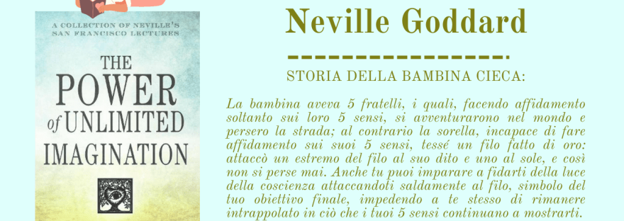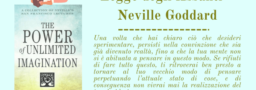 https://www.youtube.com/watch?v=rl82357mnQA Tratto da: The Power of Unlimited Imagination, Neville Goddard, De Vorss Publications, Camarillo, California, 2015. (transcribed by Margaret Ruth Broome). Il potere dell’Immaginazione Illimitata. Questo libro è nato grazie all’interessamento di Margaret Ruth Broome (un’allieva di Goddard), ed è la raccolta delle trascrizioni di alcune delle conferenze tenute da Neville Goddard a San Francisco… Continua a leggere Neville Goddard: “Siate di quelli che mettono in pratica la parola e non soltanto ascoltatori, illudendo voi stessi” – La legge che rende un uomo povero è la stessa legge che rende un altro ricco, la tua fortuna o la tua sfortuna è il prodotto del tuo stato di coscienza – non c’è nessun’altra causa!”